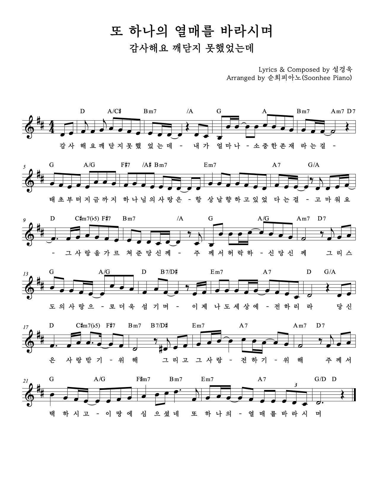 D코드 내 모습 이대로, 내 주의 보혈은 (가사/악보/파일)