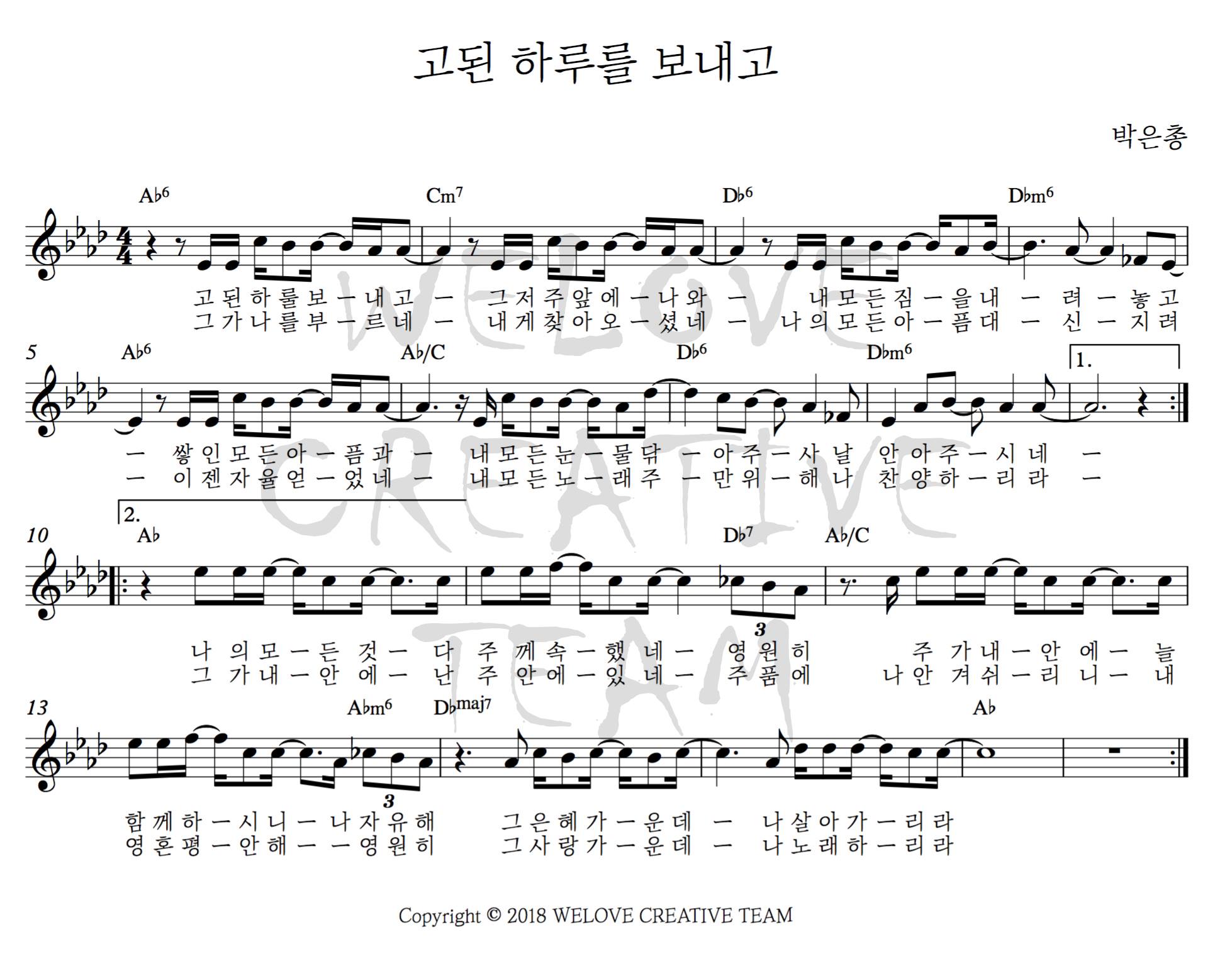 고된 하루를 보내고, 고요한 밤 거룩한 밤 Ab 코드 악보 공유합니다.