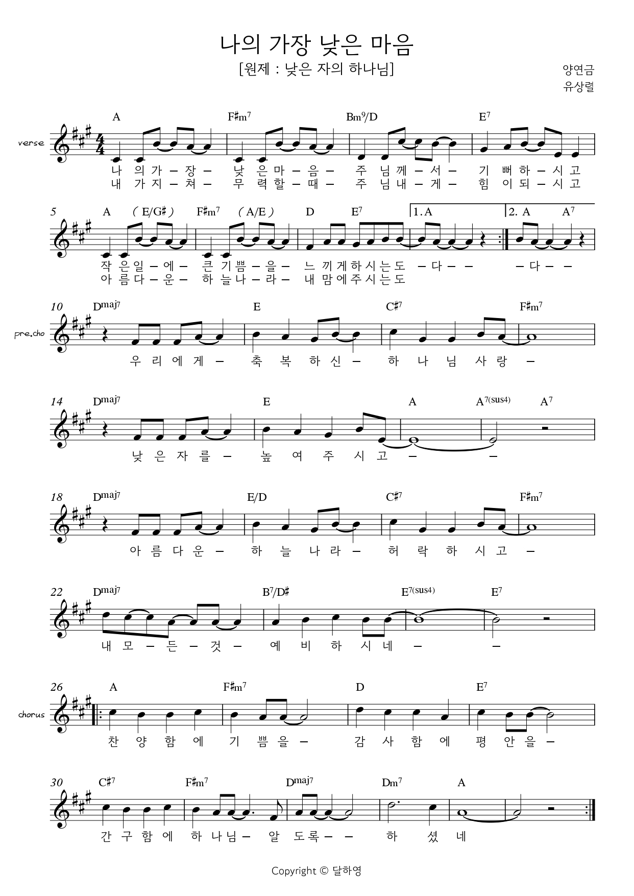 나로부터 시작되리, 나의 가장 낮은 마음 (가사/링크/악보/파일)