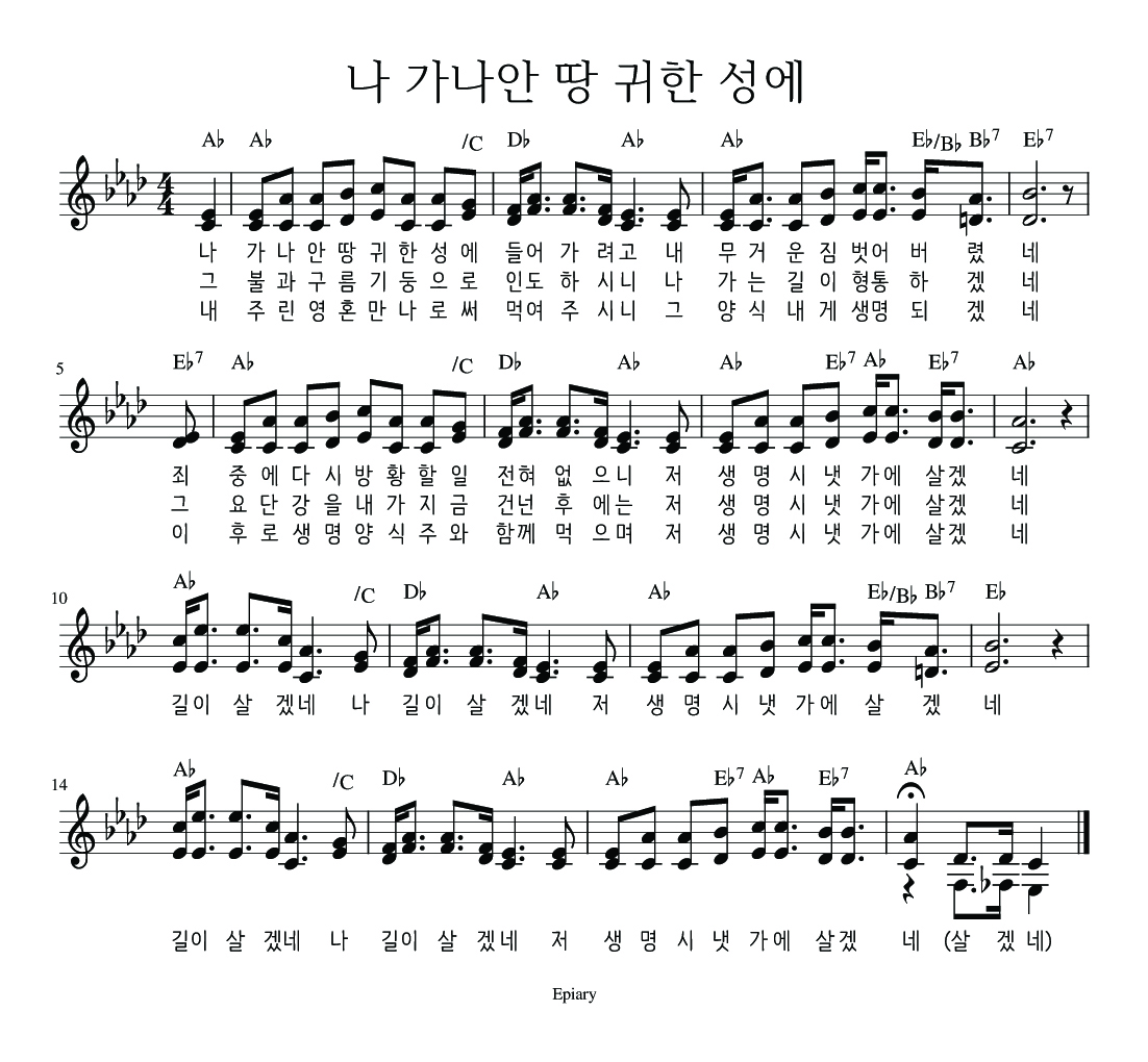 나 가나안 땅 귀한 성에, 내가 매일 기쁘게 찬양 악보 공유합니다.