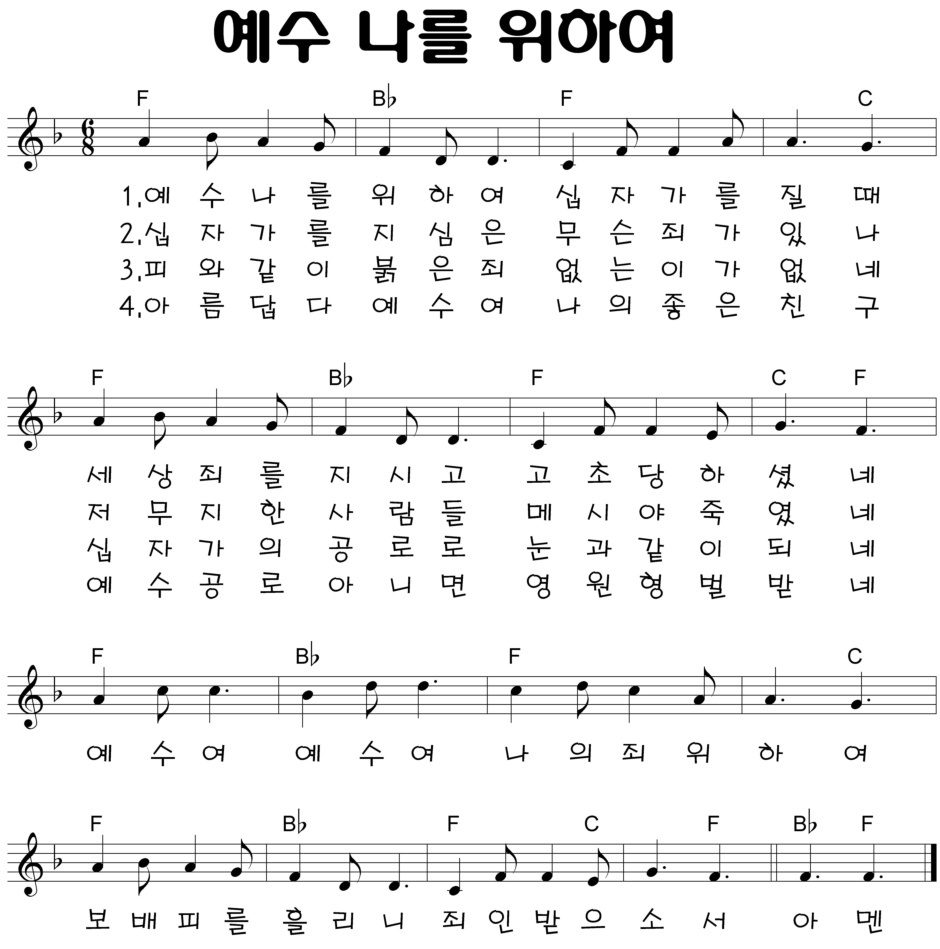 지난 글에 이어 사순절에 함께 부르기 쉬운 찬양악보2 자료를 공유하겠습니다.