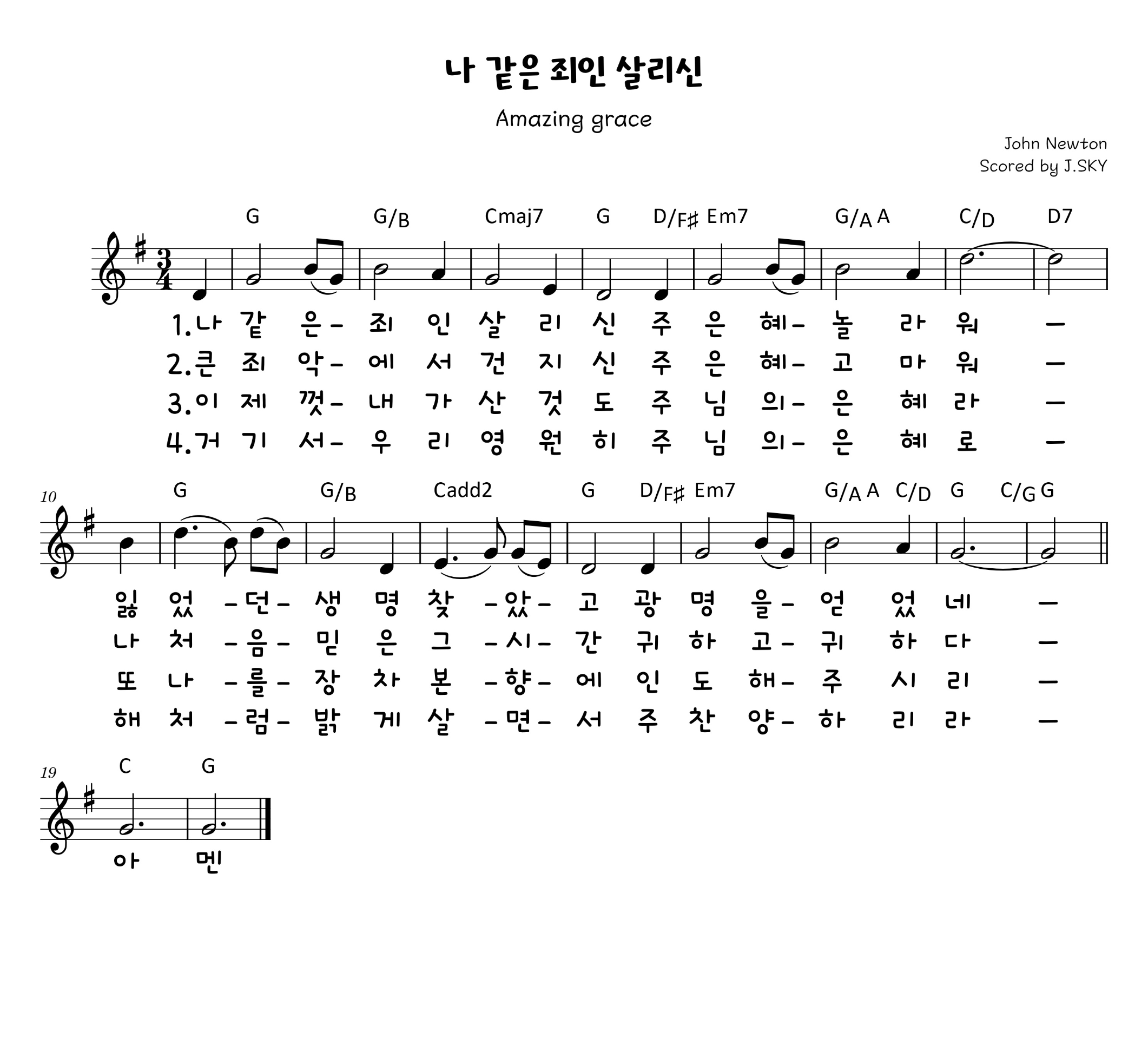 나 같은 죄인 살리신 주 은혜 놀라와 잃었던 생명 찾았고 광명을 얻었네