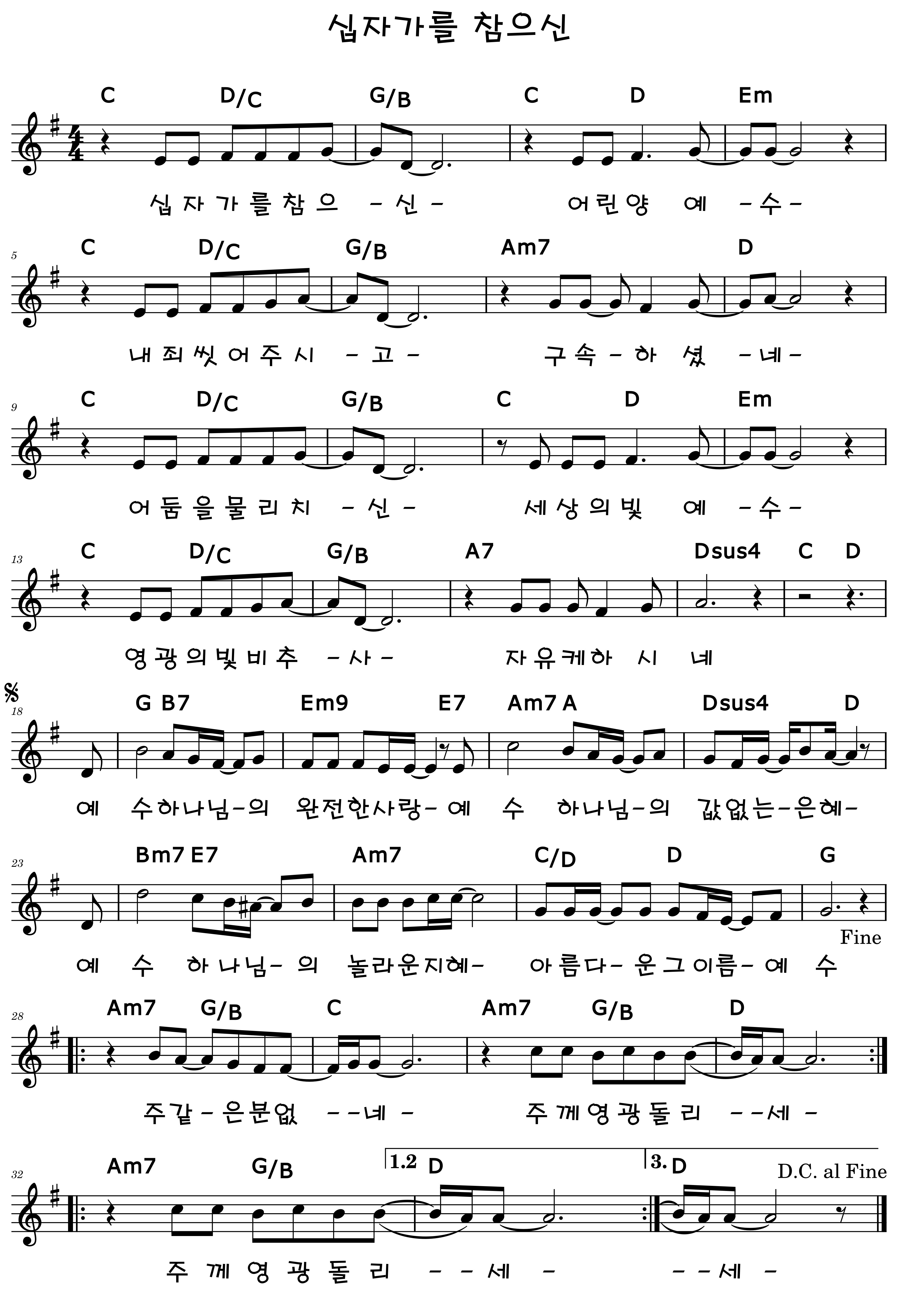 십자가를 참으신 어린 양 예수 내 죄 씻어주시고 구속하셨네