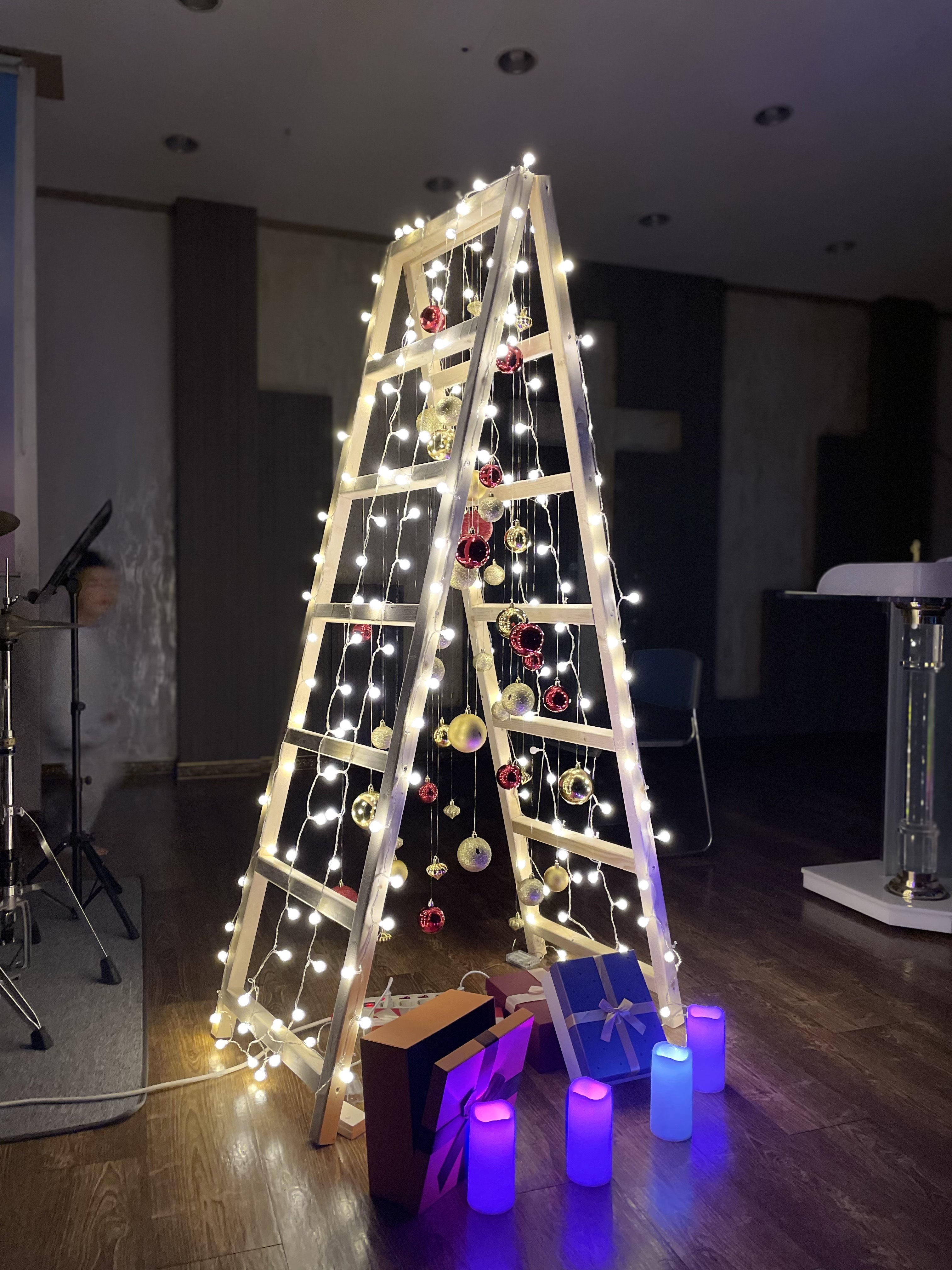 거의 대부분의 교회는 '대림절'에 맞추어 크리스마스 트리, 성탄 트리를 준비하죠. 저도 지금까지 항상 그렇게 준비했습니다. 그러던 어느 날너무 트리가 너무 식상했습니다. 그래서 색다른 것이 없을까 생각하다. '사다리 트리'를 만들면 어떨까? 라고 생각하면서 일을 벌이기 시작했습니다.