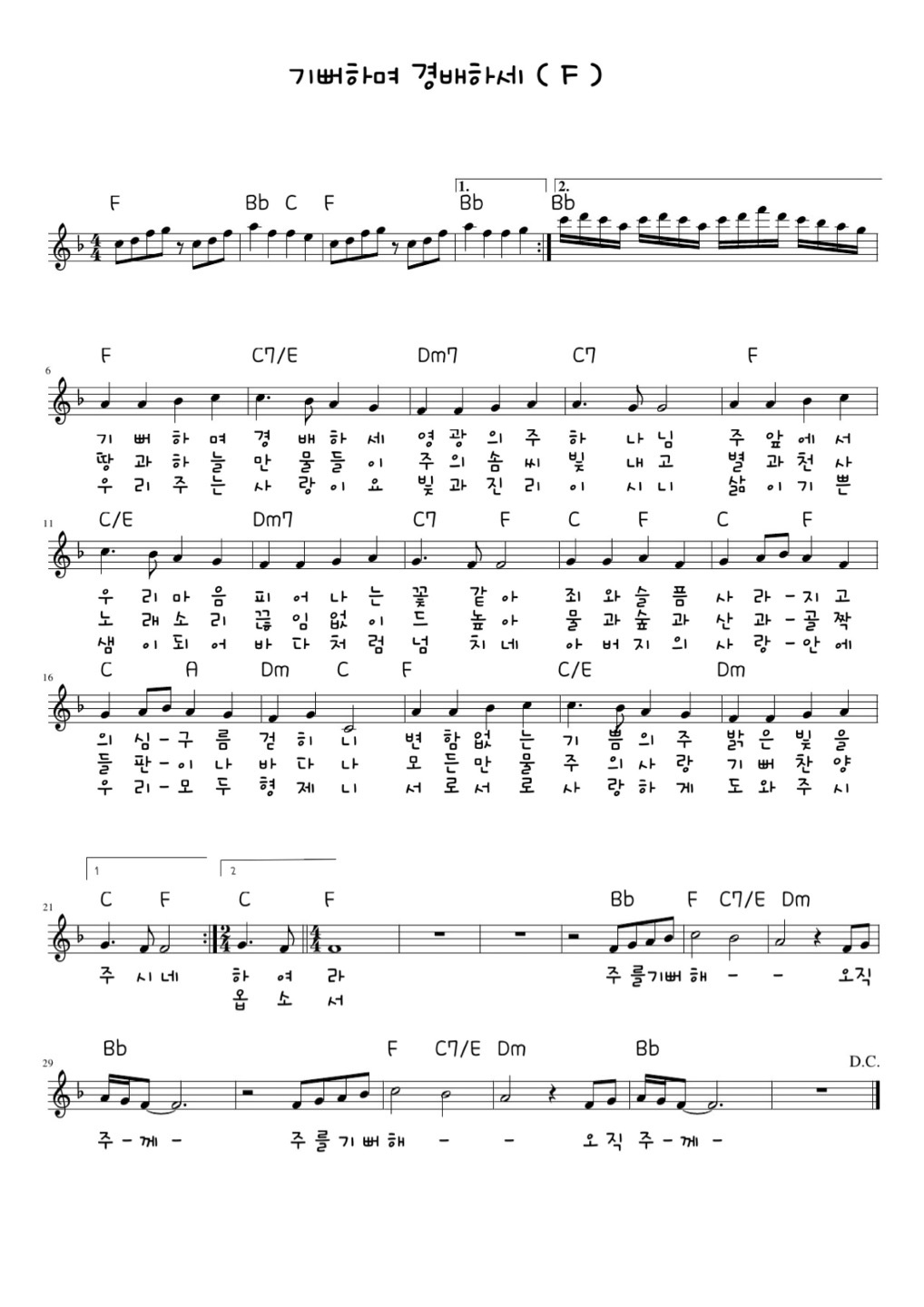 기뻐하며 경배하세 F(좌), G(우)