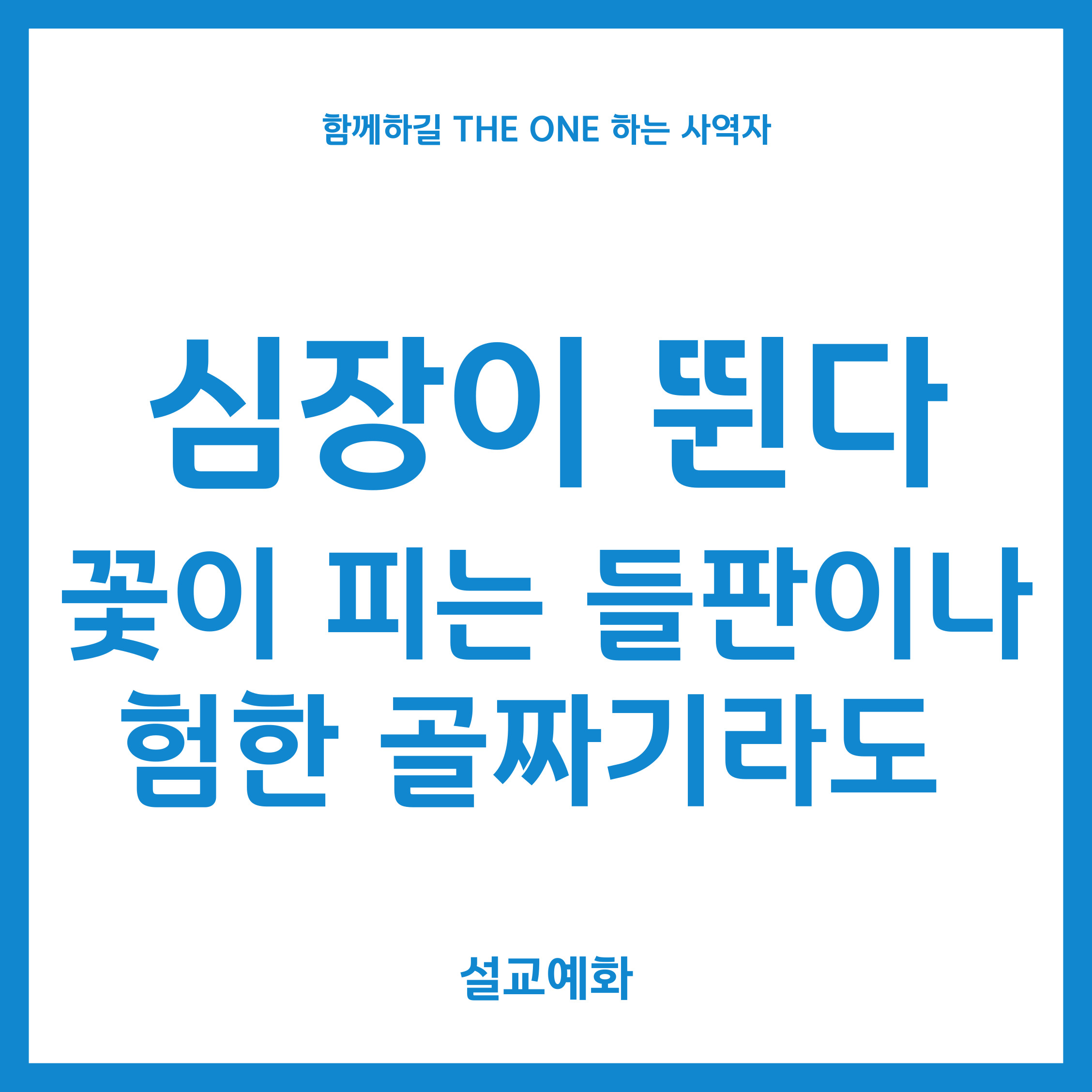 이번에는 정수영 님의 [심장이 뛴다], 김상근 님의 [꽃이 피는 들판이나 험한 골짜기라도]의 예화를 함께 공유하도록 하겠습니다.