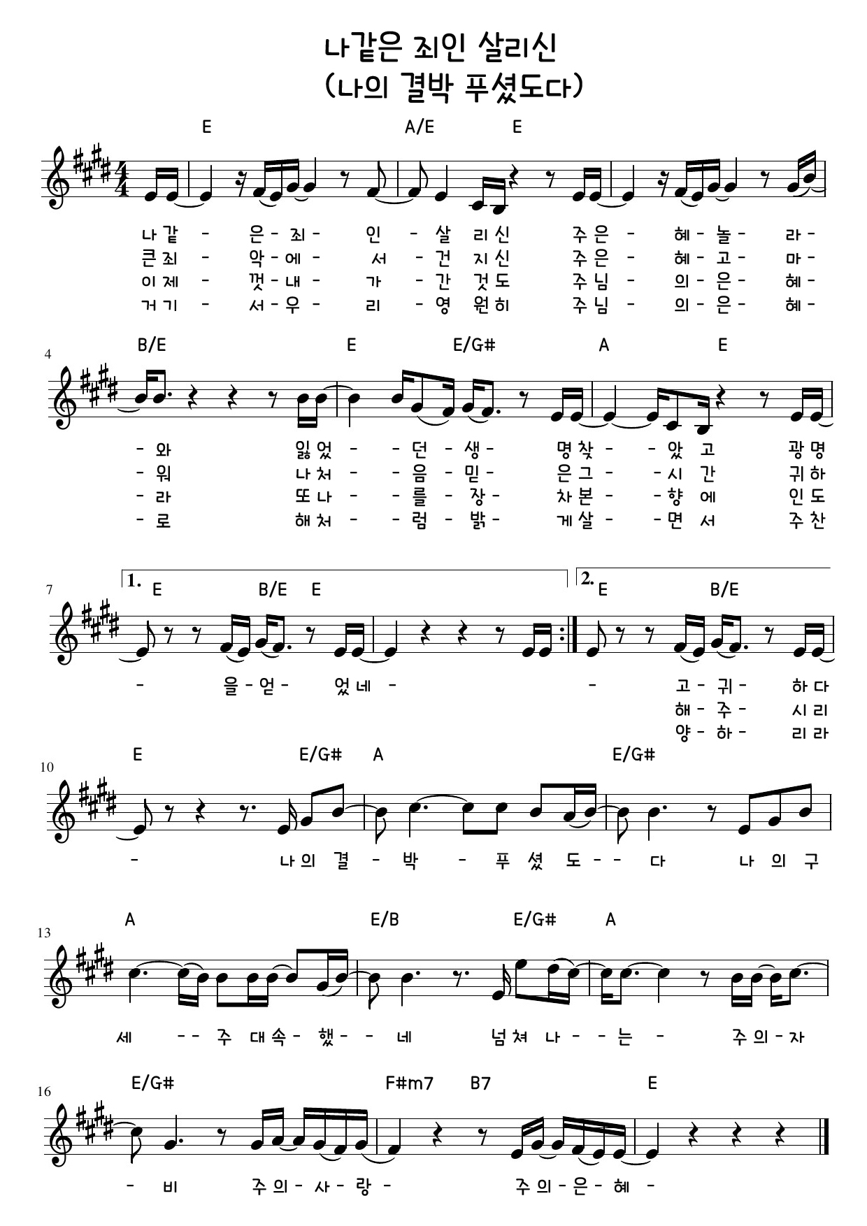 4) 나의 결박 푸셨도다 (E)