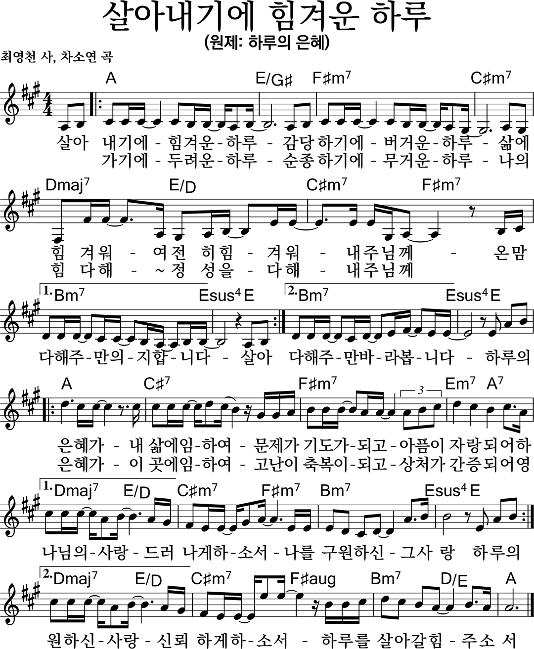 이번 찬양콘티는 '매일의 은혜'입니다.