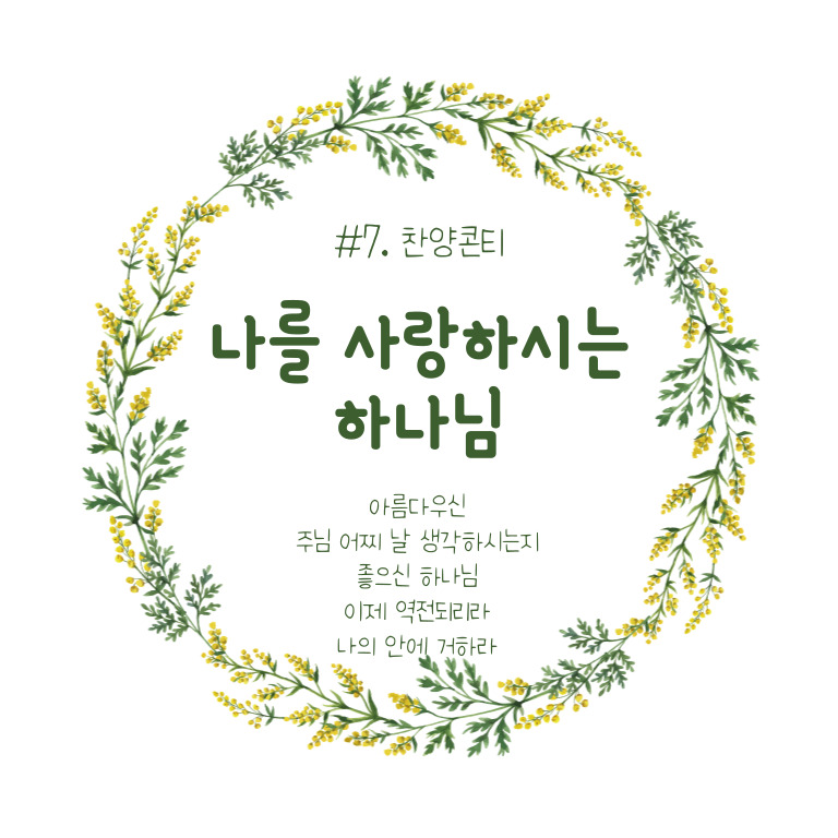 이번 찬양 콘티의 주제는 '나를 사랑하시는 하나님'입니다.