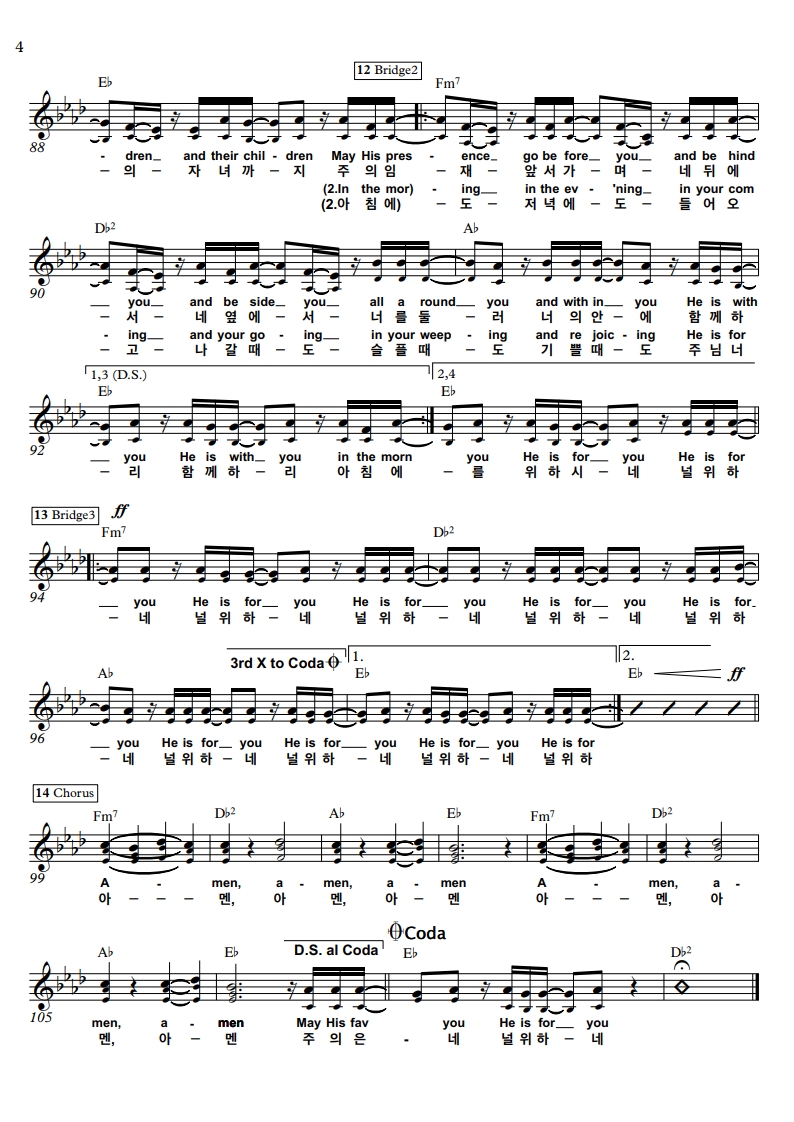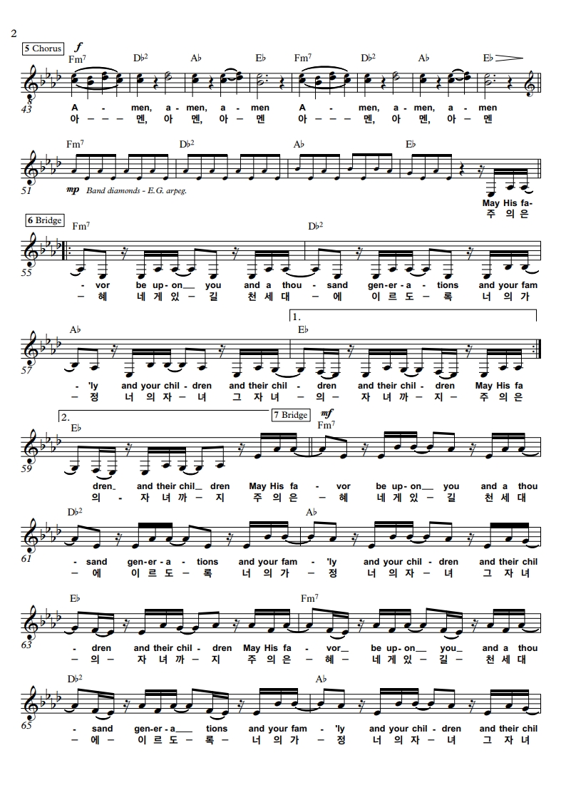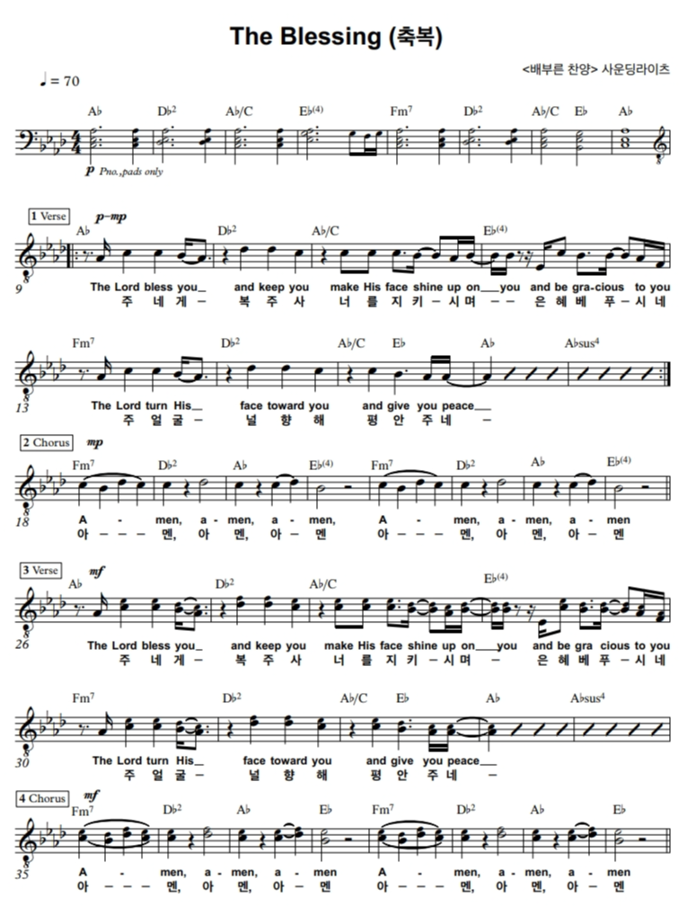 이번에는 The blessing(축복)과 갈급한 내 맘 Ab 코드 악보 공유합니다.